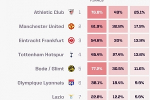 九游娱乐比分网-Opta预测欧联杯夺冠概率:毕尔巴鄂25.1%最高,曼联17.9%第二