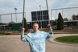 体育资讯4月2日讯 哈兰德更新社媒,晒出自己高举拐杖的照片。
